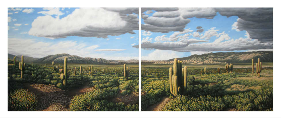 La escala de cada una de sus pinturas se define con respecto a la del observador en relación a lo representado. Cada serie de cuadros crea un espacio que los relaciona como un conjunto, formando una instalación.